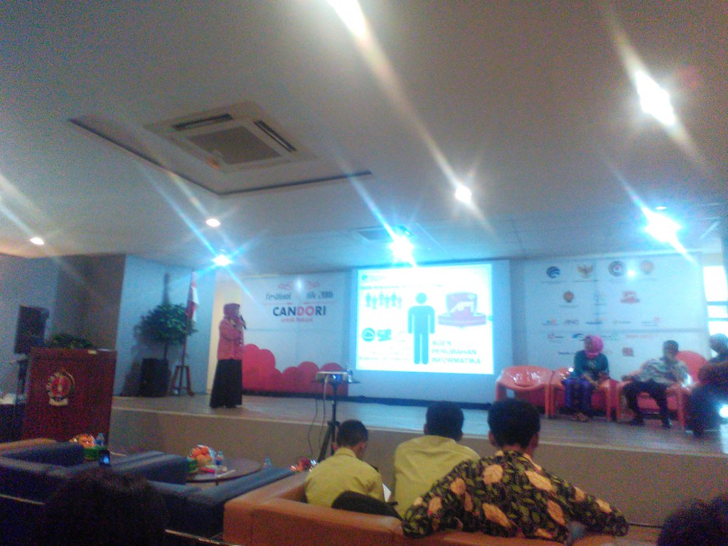 Setelah mengikuti pembukaan Festik 2016 yang di hadiri oleh perwakilan dari Kementrian Kominfo, Sultan Jogja, Kemenko PMK dan Direktorat Pemberdayaan Informatika ibu Septi. Berikutya saya mengikuti seminar Internet Cerdas, Kreatif dan Produktif  dengan Pemateri Direktorat Pemberdayaan Industri Informatika.